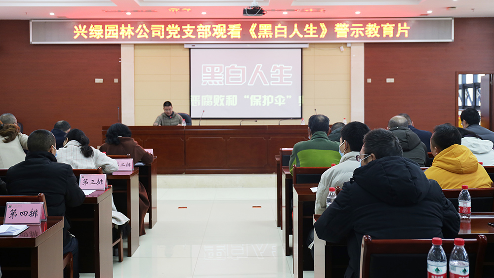 廉潔黨課前,公司全體干部職工觀看了《黑白人生》警示教育片。