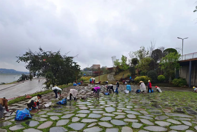 在長江濱江公園、小關門、三道橋、恒大御江灣、四公里等維護綠地,隨處可見身穿綠色工作服的興綠園林公司綠化工人忙碌的身影,他們除草、松土、補植、澆水、打支撐,最后清潔場地,分工合作,井然有序,一片繁忙的景象。
